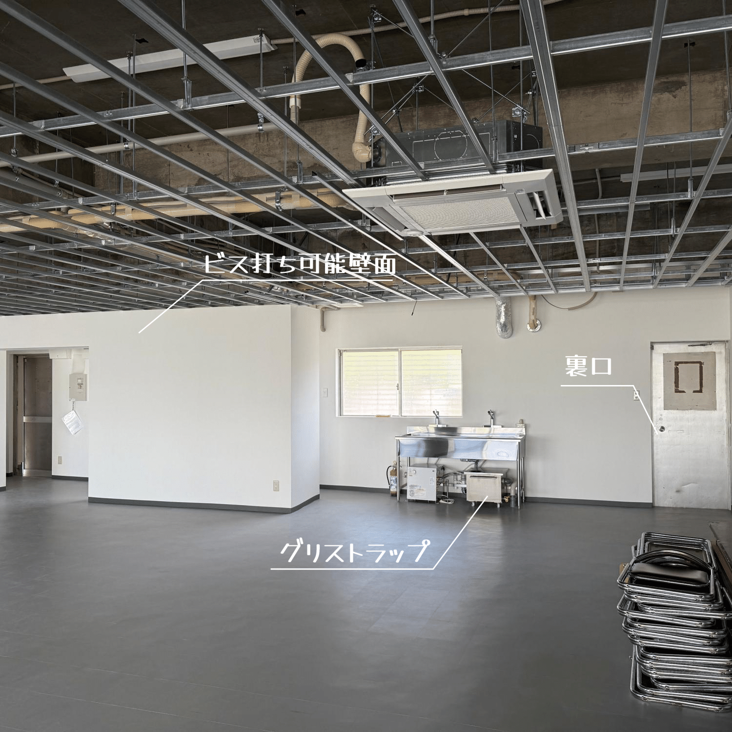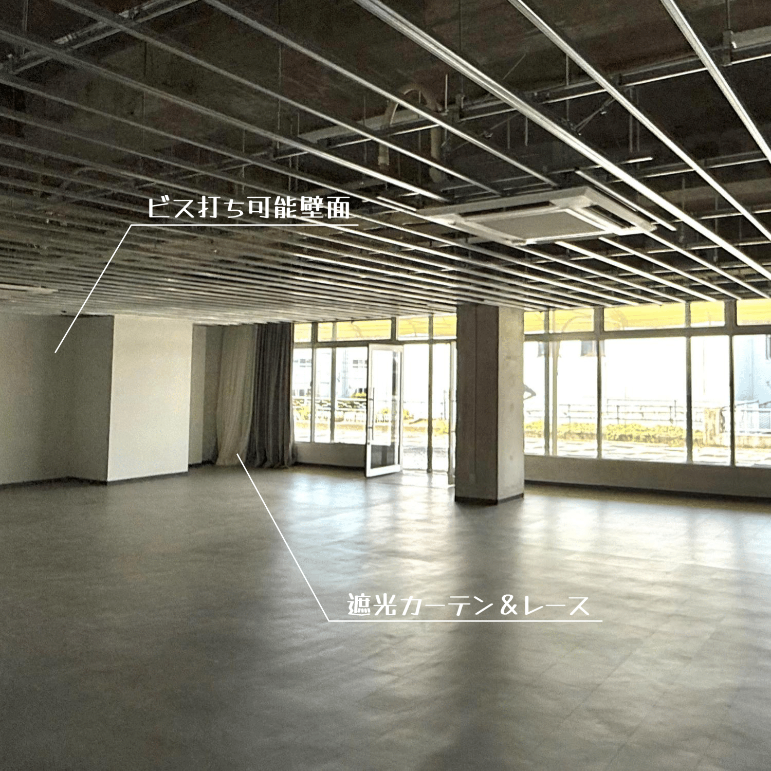 | 床面積 | 142.08㎡ ※広いスペースを自由に利用できるので、グループでの創作や大型作品の制作に利用いただけます。 |